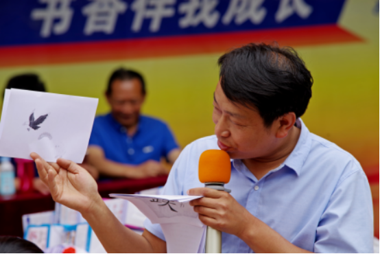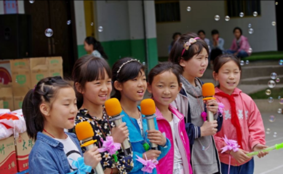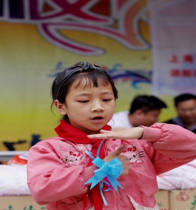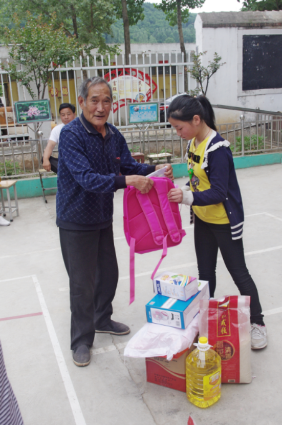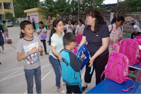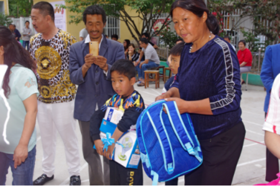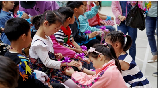 洛阳市区的孩子们给山区孩子带上美丽的蝴蝶结。