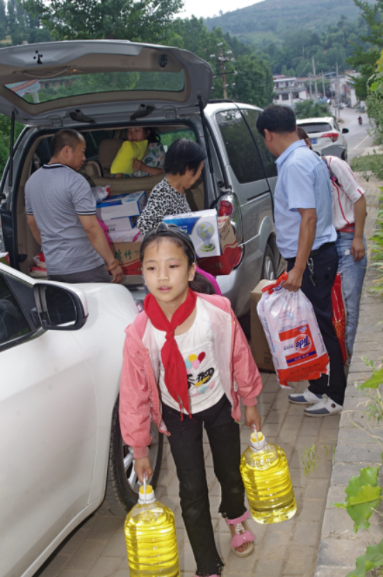 这次的到来我们为孩子们送来了学习用品,同时也为孩子的带来了大米、食用油、面粉、生活用品,以及各位爱心人士捐赠的衣服。